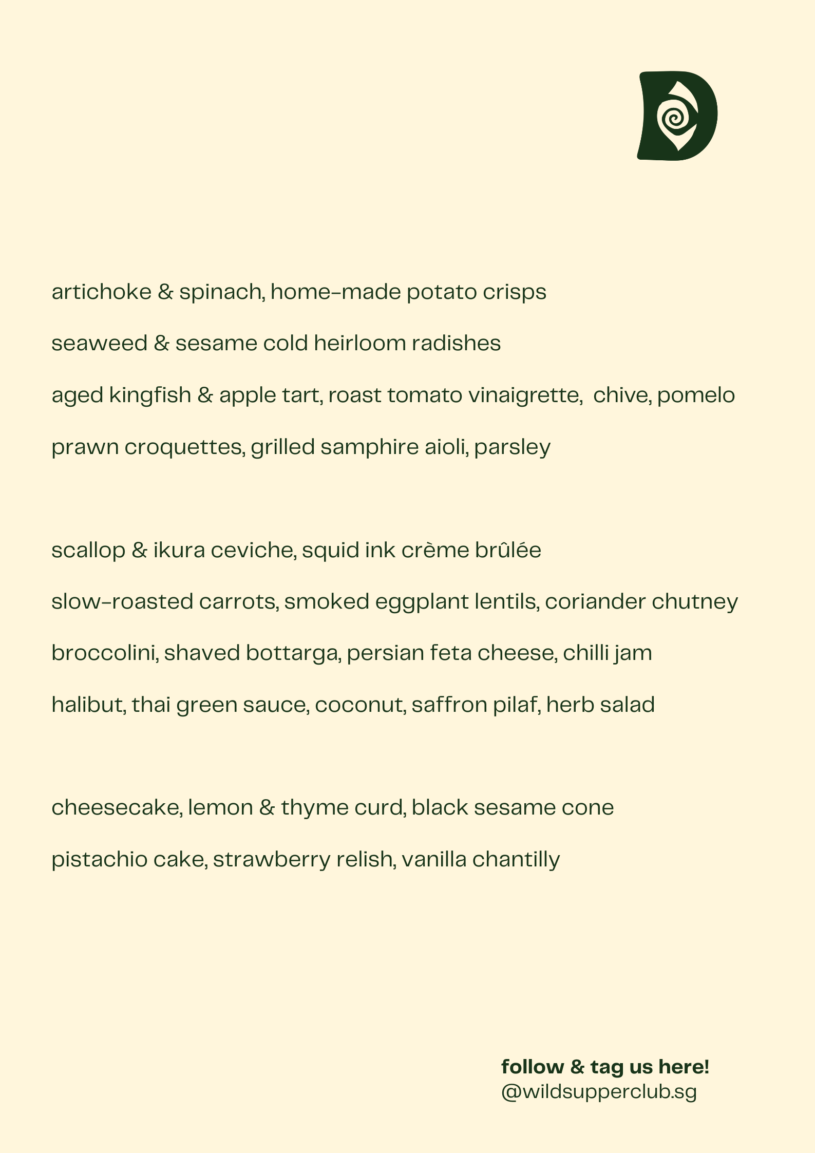Please note that the menu is subject to change at any time. For any dietary restrictions, please inform us a week in advance and we will try our best to accommodate.
